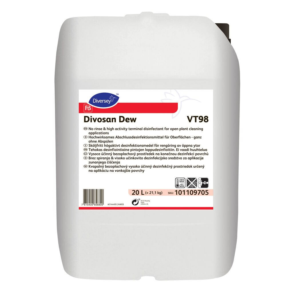 Divosan Dew VT98 20L - Desinfektionsmedel med hög Aktivitet som inte Behöver Sköljas av för Användning i öppna Anläggningar