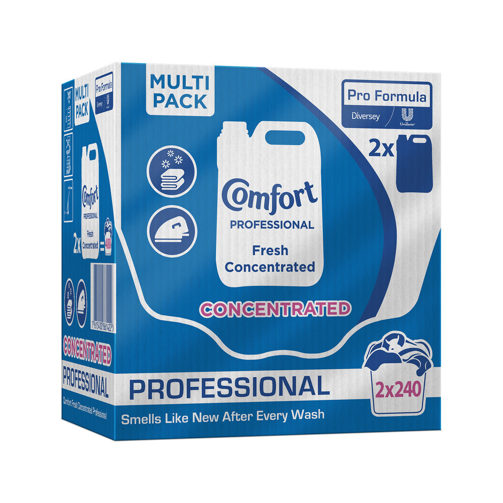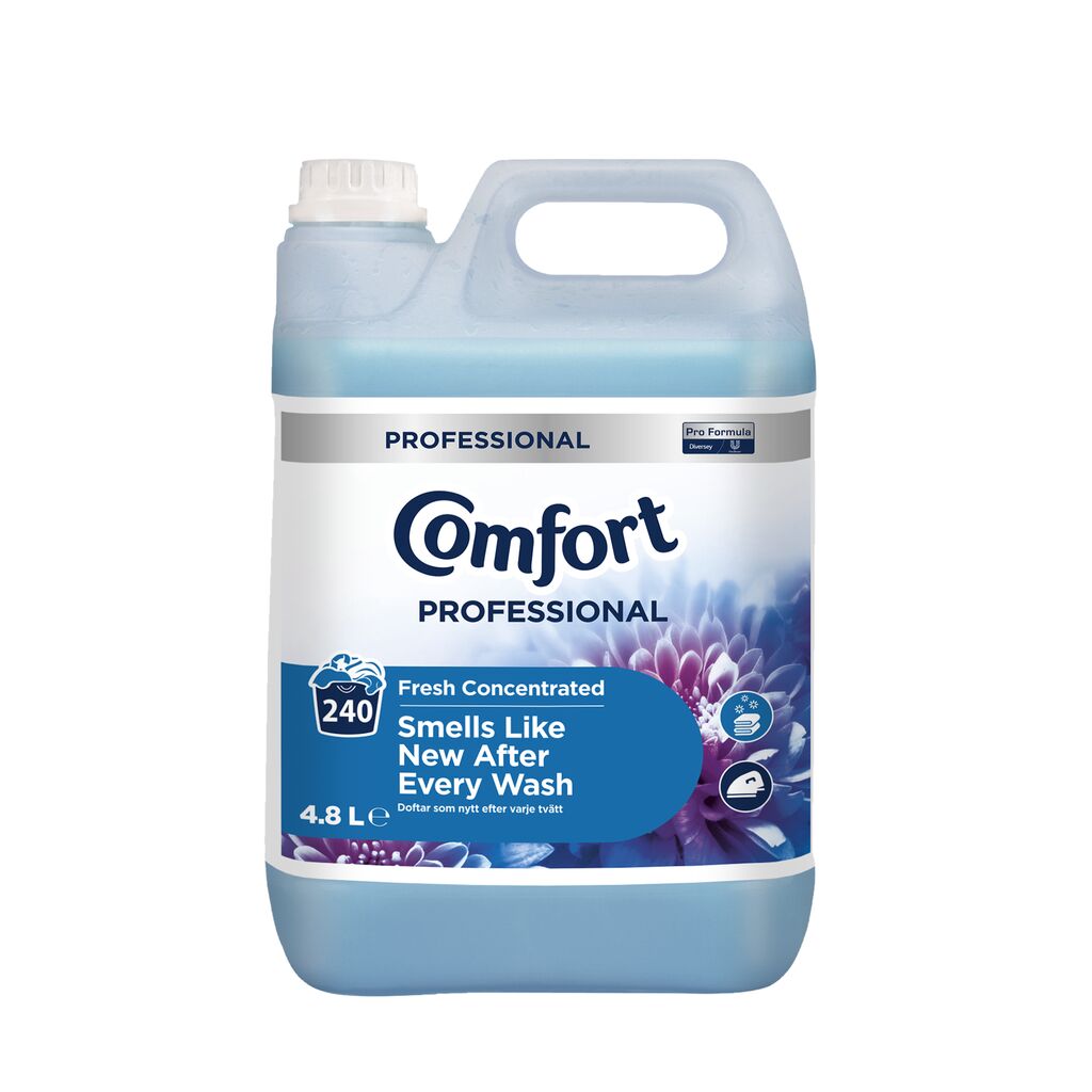 Comfort Fresh Concentrated Professional sköljmedel ger inte bara en fantastiskt mjuk känsla och en fantastisk doft, det gör också att kläder, handdukar och sängkläder känns mjuka och skonsamma mot huden och bevarar färgen. Det bidrar också till att textilierna ser nya ut längre och gör strykningen enklare.