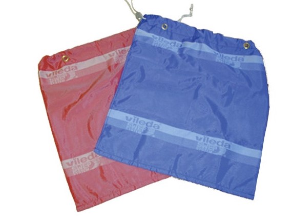 Hållbar röd tvättsäck med öglor från Vileda Professional. Tar hand om smutsiga moppar och dukar. Tål tvätt vid 60 grader.