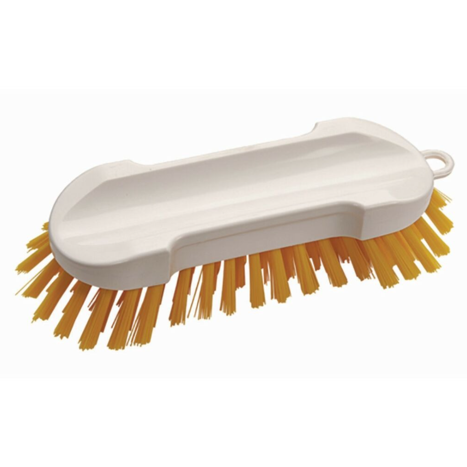 Effektiv och hållbar handskurborste med hårda strån – idealisk för grovrengöring av tuffa ytor och smutsiga områden. Den ergonomiska formen ger ett bra grepp, vilket gör arbetet enklare och minskar belastningen vid längre användning. Tillverkad i slitstarkt material som tål daglig användning och starka rengöringsmedel. Färgkodad i gult för enkel zonindelning och hygienhantering enligt HACCP-standard.