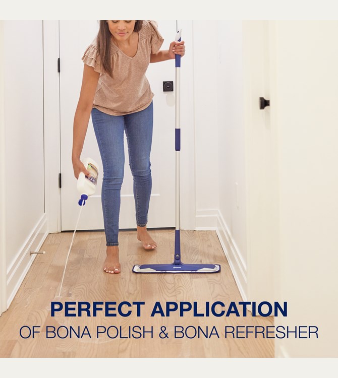 Bona Appliceringsmopp av mikrofiber är utformad för en jämn och kontrollerad applicering av Bona Golvpolish för Trägolv, Bona Golvpolish för Hårda Golv och Bona Refresher för Trägolv. Den unika, mjuka och icke-slipande mikrofiberdesignen ger en felfri, jämn finish och är säker att använda på både trägolv och andra hårda golvytor.