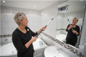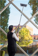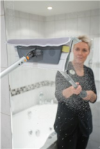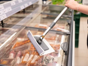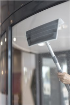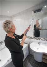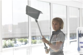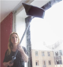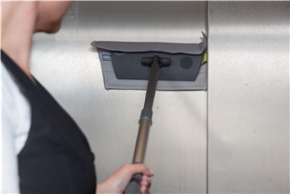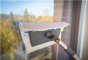Vikan Easyshine Kit med flexibelt moppstativ är en komplett lösning för rengöring av fönster, speglar, kakel, rostfritt stål, whiteboardtavlor och andra högblanka ytor, även krökta ytor såsom cirkulationsdörrar, badkar, jacuzzibad, plaststolar och fordonsfönster.