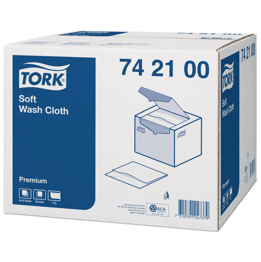 Skonsam vård av patienter med denna Tork tvättduk, som levereras i en praktisk förpackning att ha på lager. Använd Tork Premium tvättduk i patientrum och undersökningsrum för en mild och noggrann rengöring. Den mjuka men ändå starka duken hanterar enkelt mild tvål och vatten så att huden hålls frisk och bidrar till att minska infektionsrisken. Levereras i ett stort paket med 135 dukar, vilket gör den idealisk för sjukhus, läkarmottagningar och vårdhem. Består av cellulosabaserat, airlaid nonwoven-material förstärkt med mjukt viskosfiber.