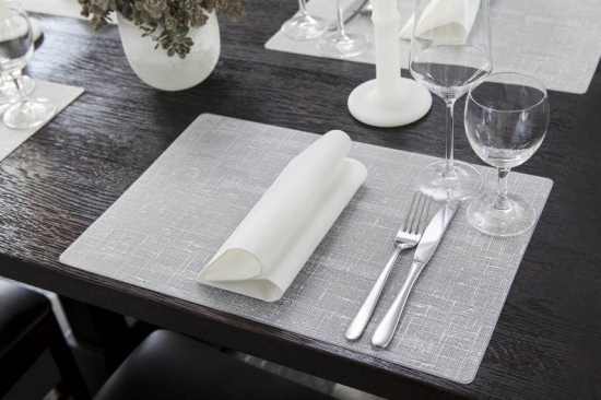Middagsservett Dunilin vit 40x40cm. Högkvalitativa servetter med linnekänsla. Mycket dekorativa och mjuka och perfekta till servettvikning, enkla att bryta. Finns i flera olika färger och designs.