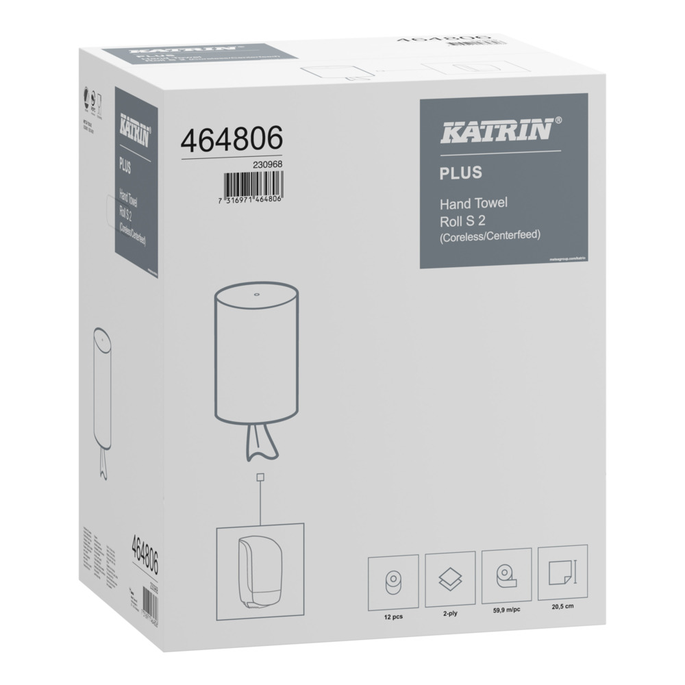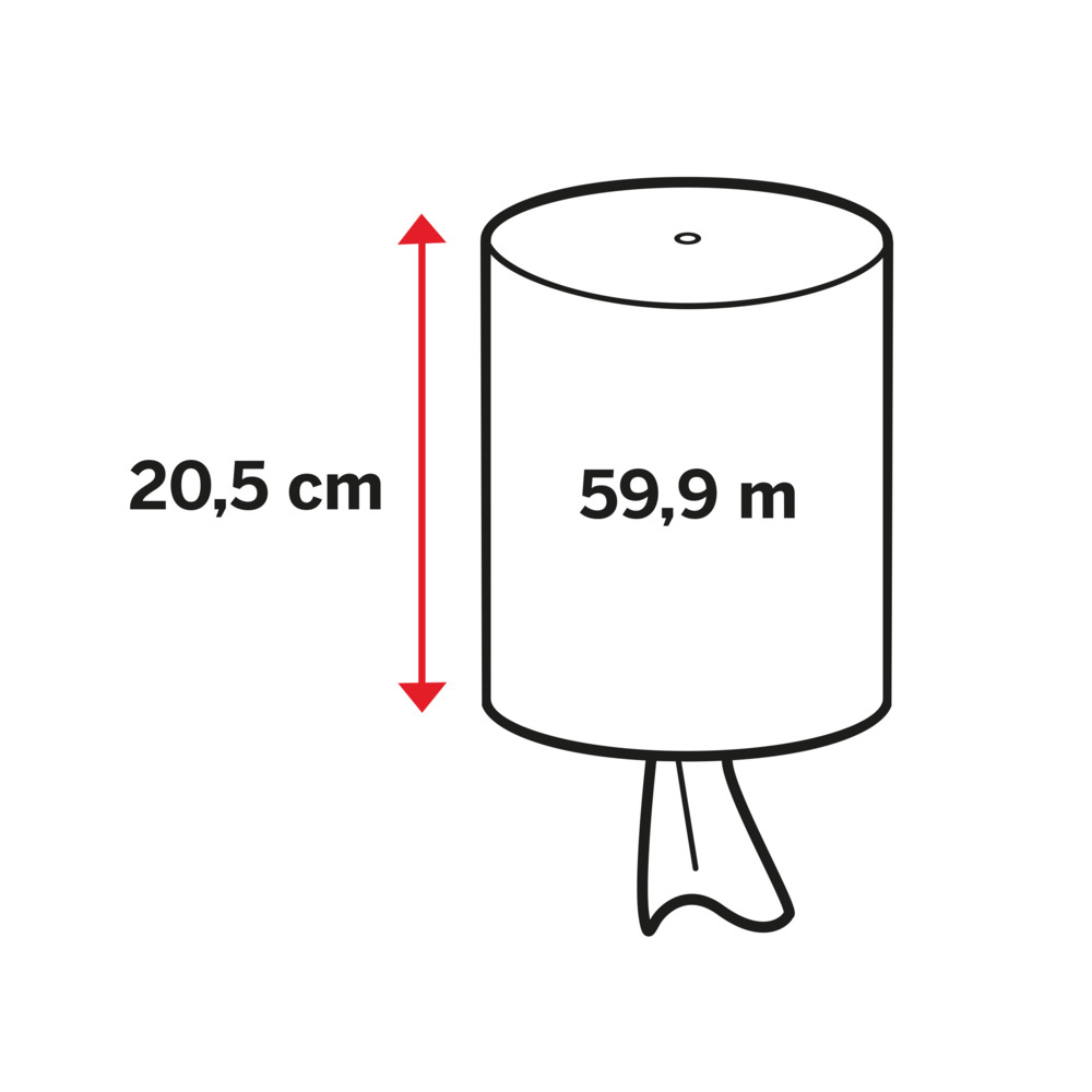 Förbättra effektiviteten med detta 2-lagers papper, idealiskt för att snabbt torka upp spill. Hög absorptionsförmåga och låg förbrukning gör att det räcker länge. Hylslös design förenklar påfyllningen. Miljömärkt med Svanen och PEFC, säkert för kortvarig kontakt med livsmedel. Används med Katrin Centrummatad S Dispenser för enkel avrivning och kontrollerad förbrukning. 59,9 meter per rulle, 12 rullar per förpackning.