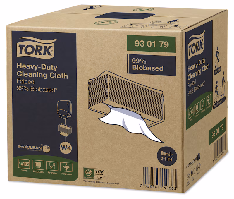 ● De biobaserade rengöringsdukarna inkluderar: Rengöringsduk Kraftig (99 % biobaserad), Rengöringsduk Kök (100 % biobaserad) och Tork Rengöringsduk Slitstark (100 % biobaserad).