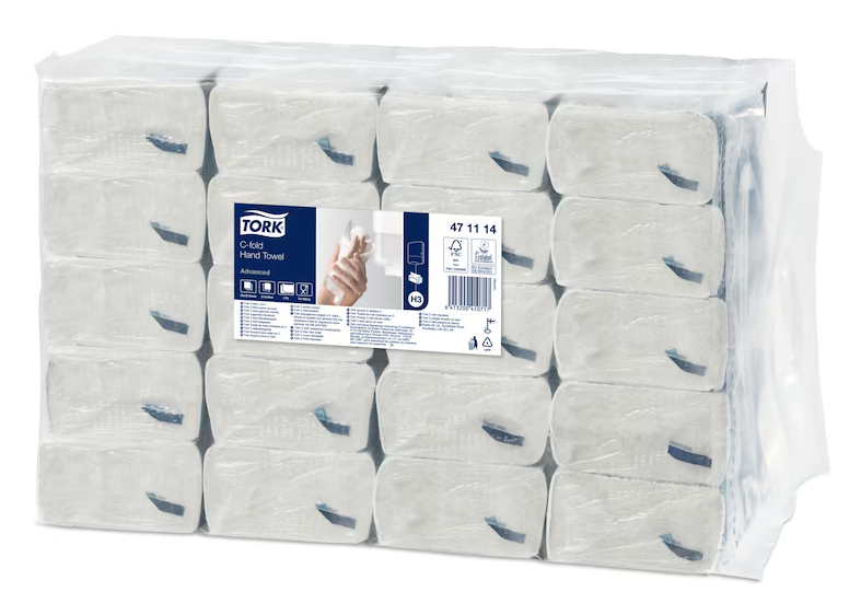 Tillgodose grundläggande handavtorkningsbehov med Tork C-fold Handduk i Advanced-kvalitet för miljöer där kostnad och prestanda är lika viktiga faktorer. Dessa handdukar passar i Tork Dispenser Singlefold/C-fold som är ett traditionellt system med handdukar i travar.