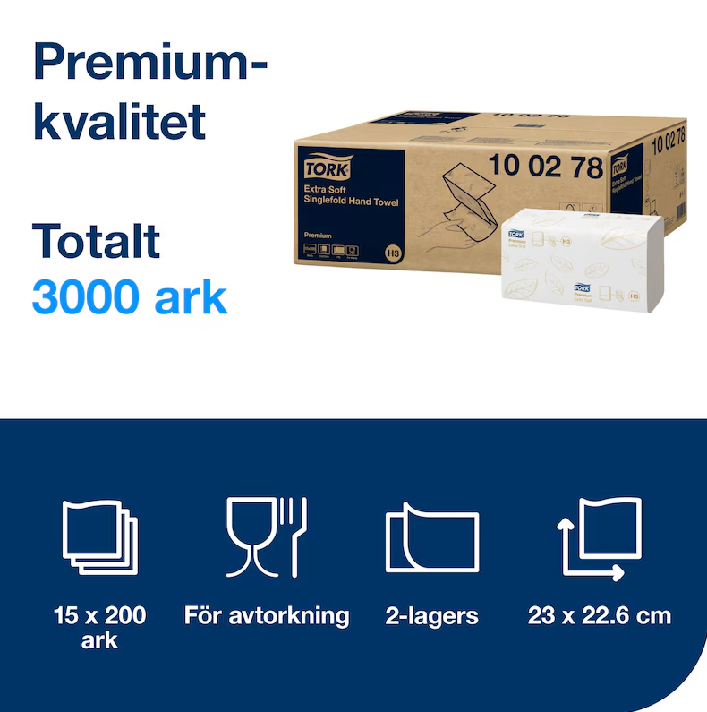 Pappershandduk Tork Extra Mjuk Singlefold Premium 3000ark