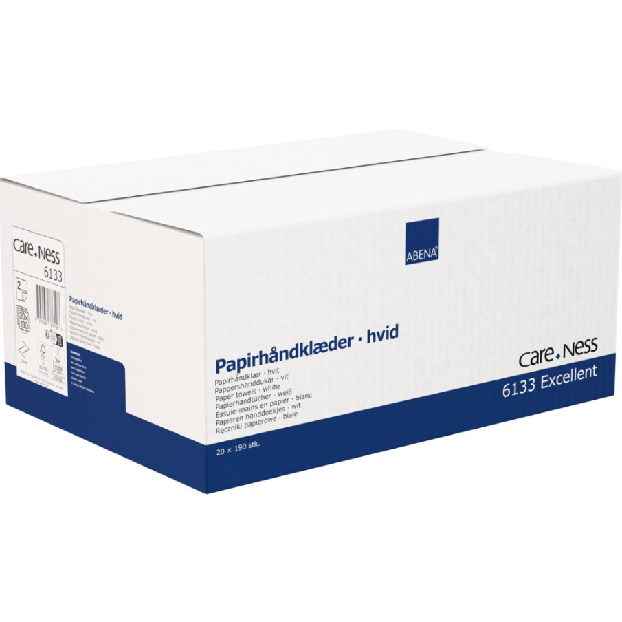 Handduken är det hygieniska alternativet till tyghanddukar och handtorkar. Produkten är tillverkad i 100 % nyfiber, som tillsammans med den släta ytan och den unika präglingen säkerställer maximal absorptionsförmåga och därmed minskar förbrukningen. Dessutom är arken vikta så att man tar ett ark i taget, vilket både minskar konsumtionen och ökar hygienen.