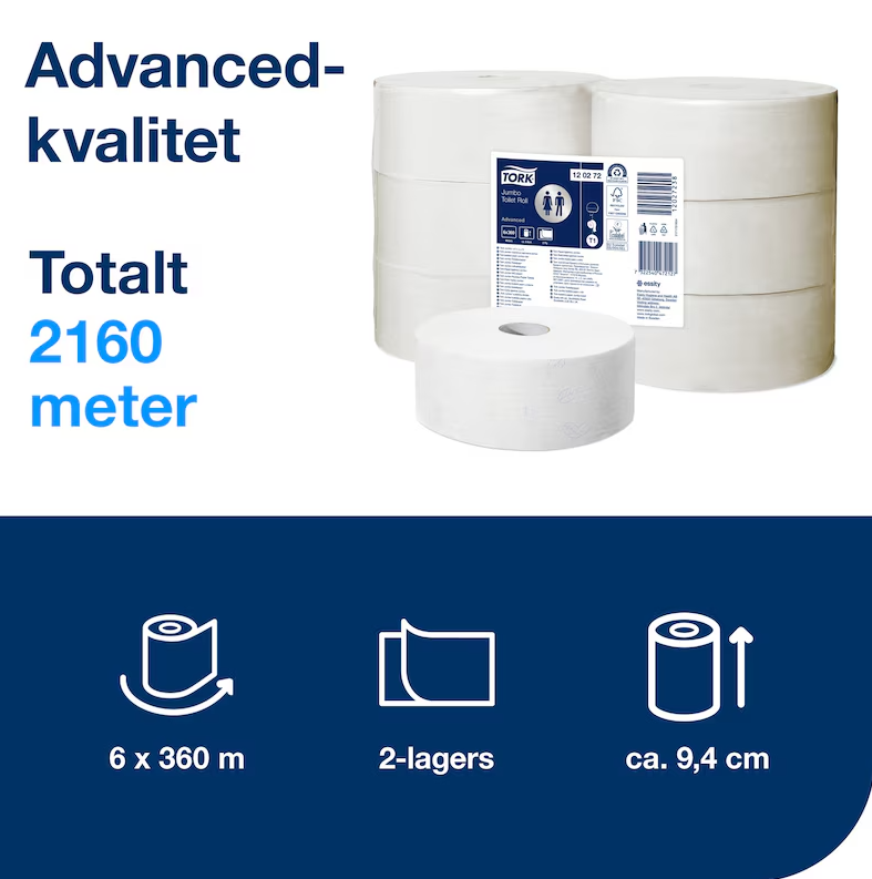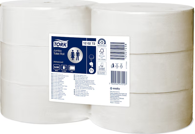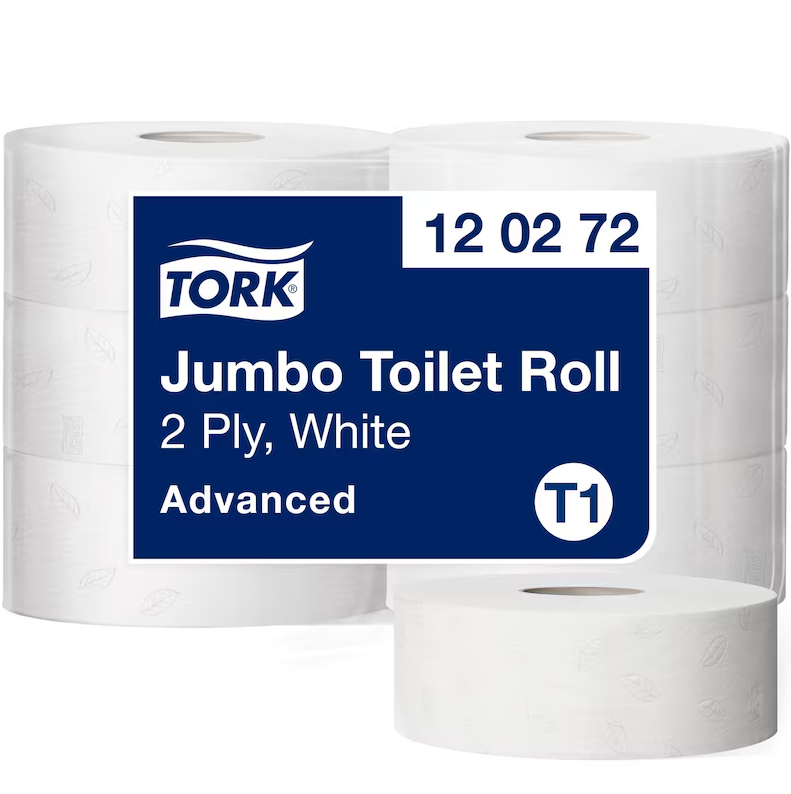 Systemet Tork Jumbo innebär effektivt utnyttjande av tiden och minskade kostnader och erbjuder mycket mer toalettpapper än standardrullar. Tork Jumbo toalettpapper med 2 lager skapar en god balans mellan kostnad och prestanda och passar perfekt för platser med hög besöksfrekvens.