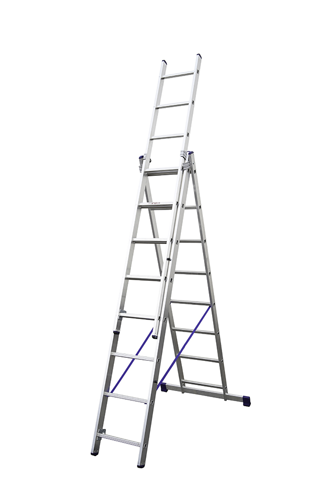 Stegen kan användas som fristående kombi- eller utskjutstege.