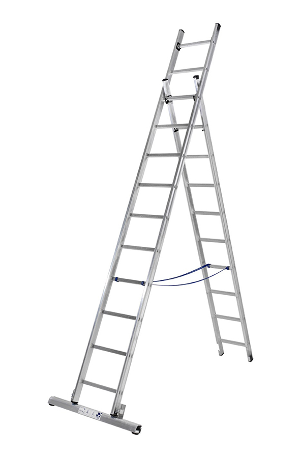 Stegen kan användas som kombistege (fristående), utskjutstege alternativt 2 stycken enkelstegar. Stegen levereras alltid med stegfot.
