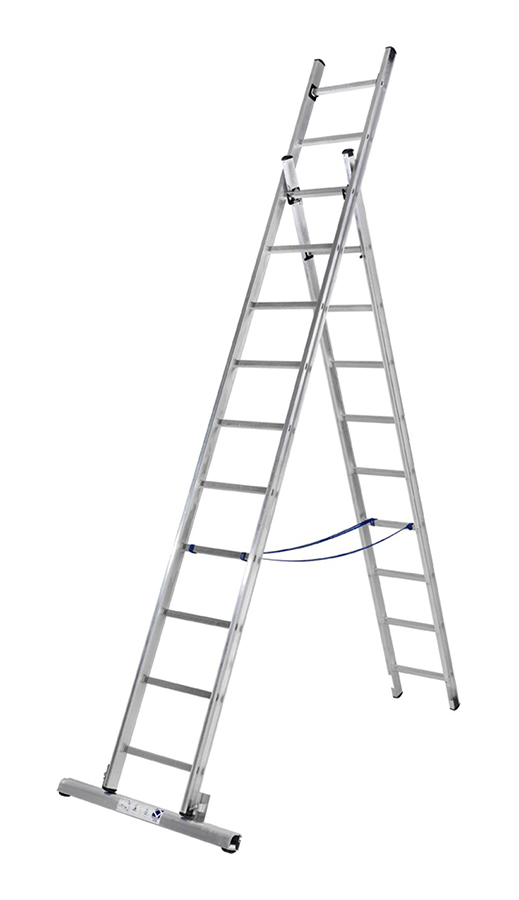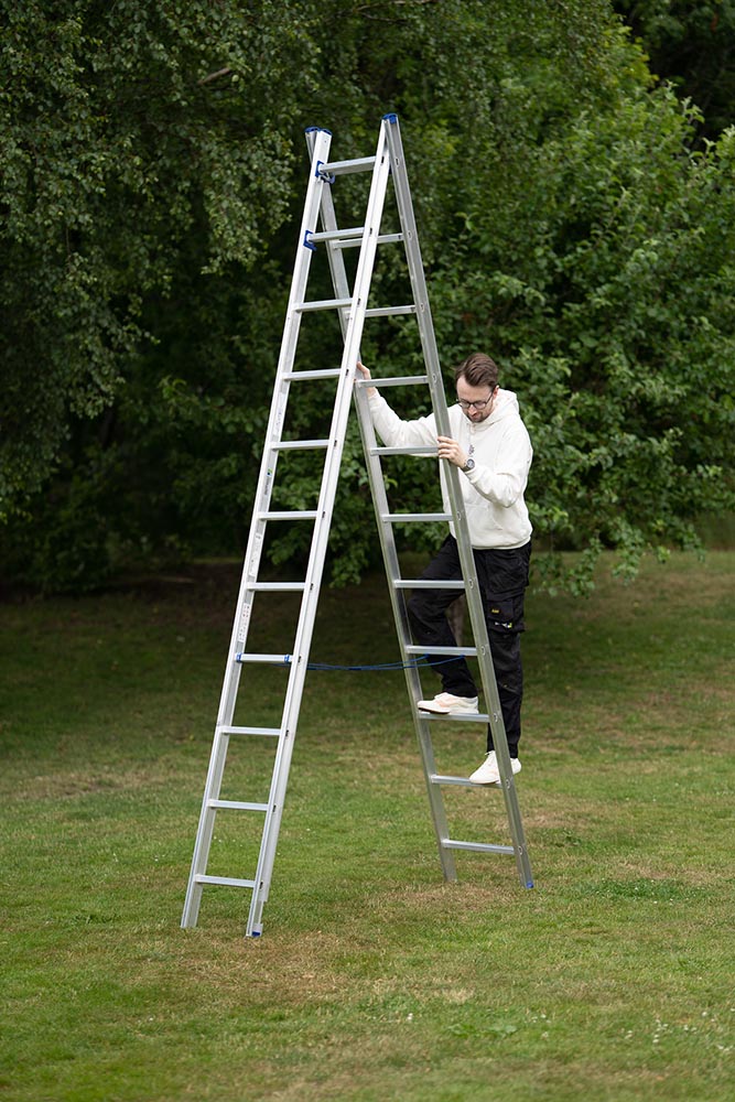 Stegen kan användas som kombistege (fristående), utskjutstege alternativt 2 stycken enkelstegar. Stegen levereras alltid med stegfot.