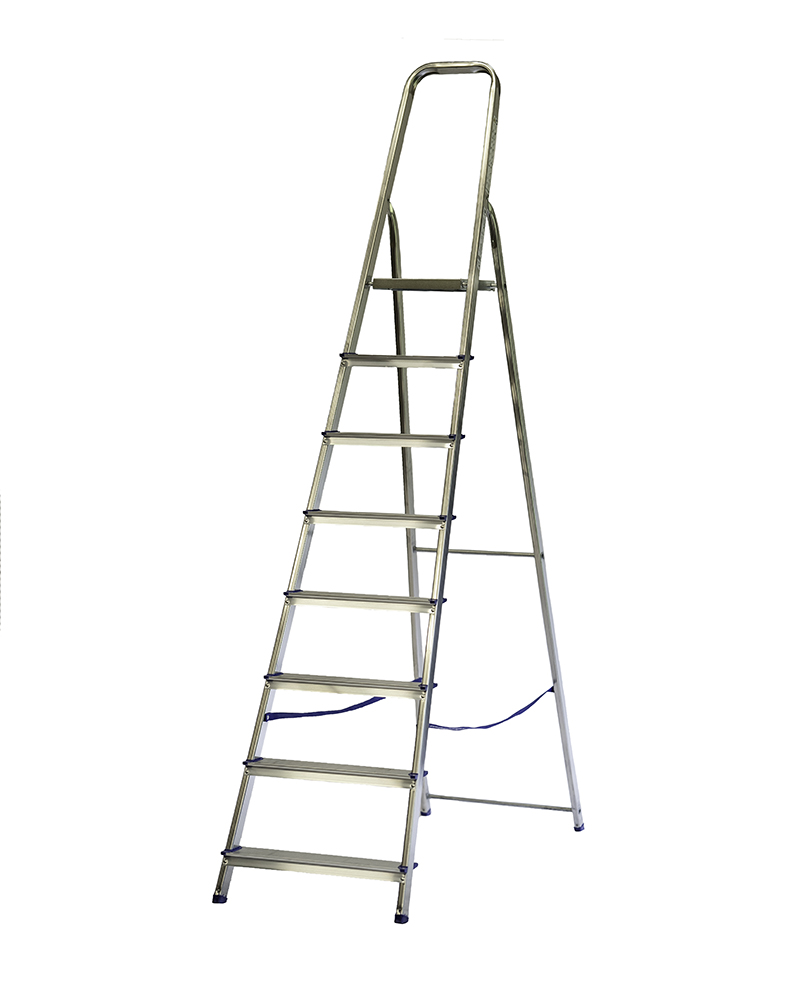 Praktisk trappstege tillverkad i aluminium med plattform i plåt, vilket gör att stegen är lätt och smidig att använda.